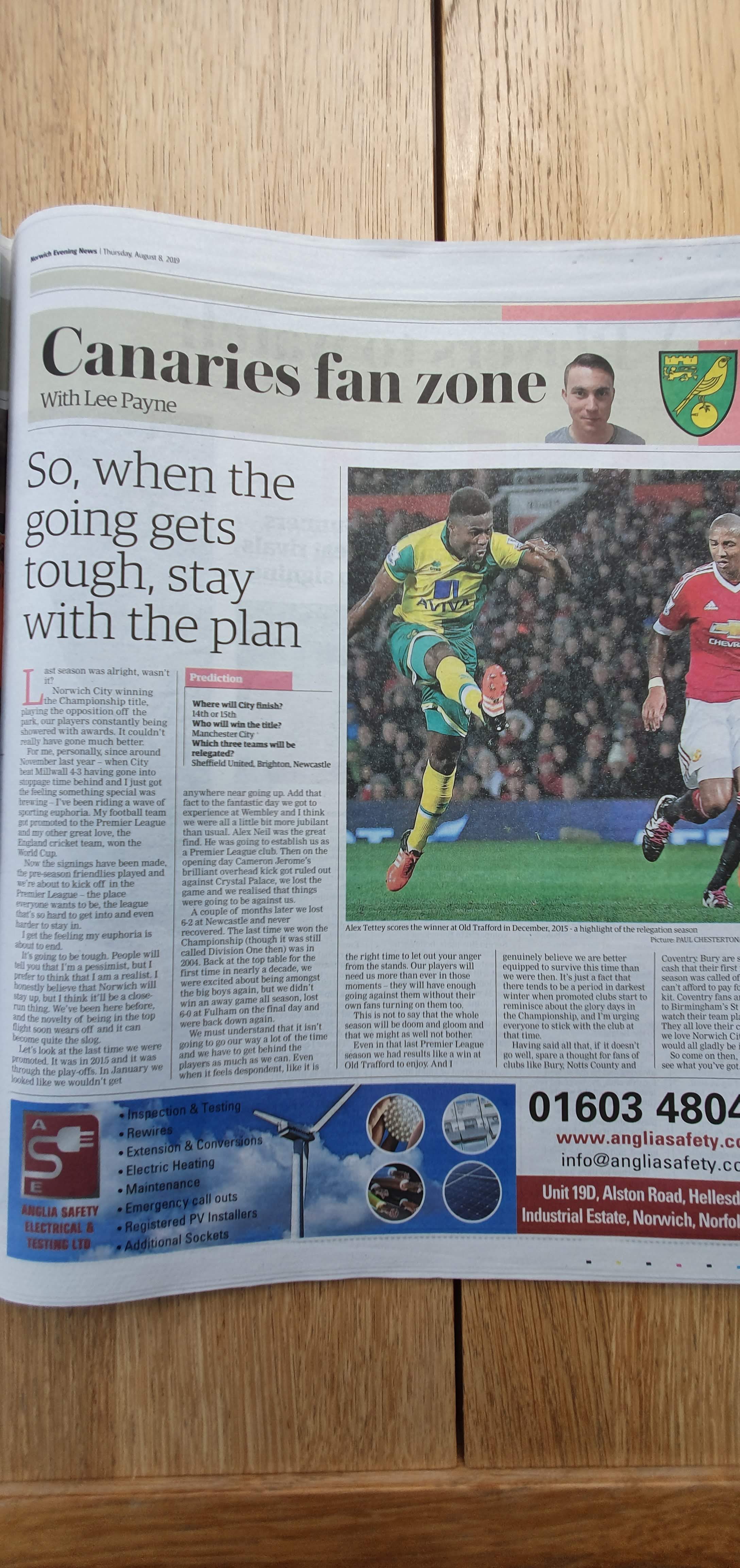My first column of the new football season was published in the Pink Un pullout, inside the Norwich Evening News and Eastern Daily Press, on Friday.