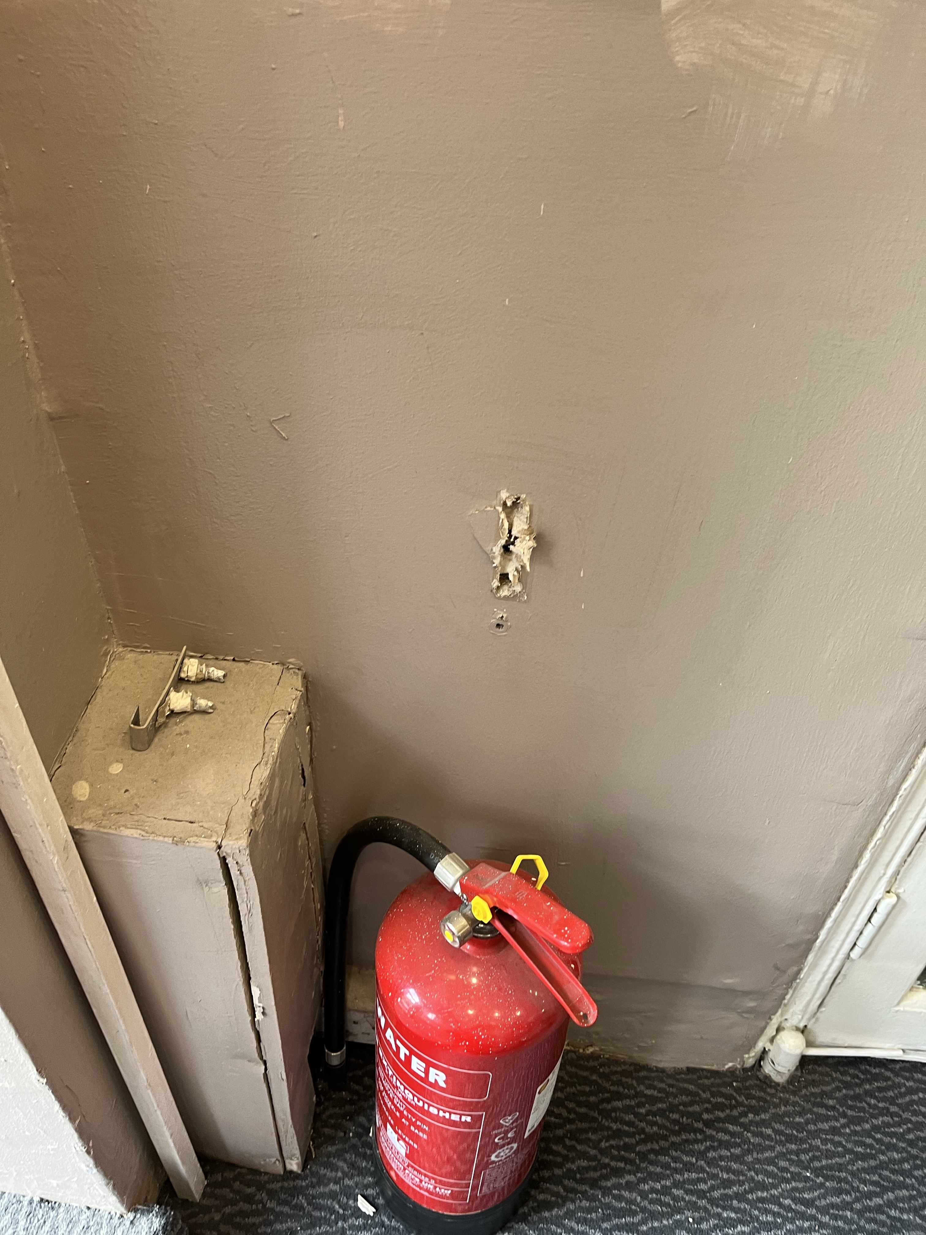 I have never walked into a hotel room and burst out laughing before, but that was exactly my reaction to room 19A at the Grapevine. It was so hilariously bad, so miserable, so dirty, that laughter was all my brain would offer me. Being in the basement, I had feared that would mean no windows, but my eyes were drawn to light coming from behind a pair of curtains. The curtains were drawn, but hanging on to the rail for dear life. Some daylight would improve the situation I thought. I pulled the curtains and immediately discovered why they had been closed.
