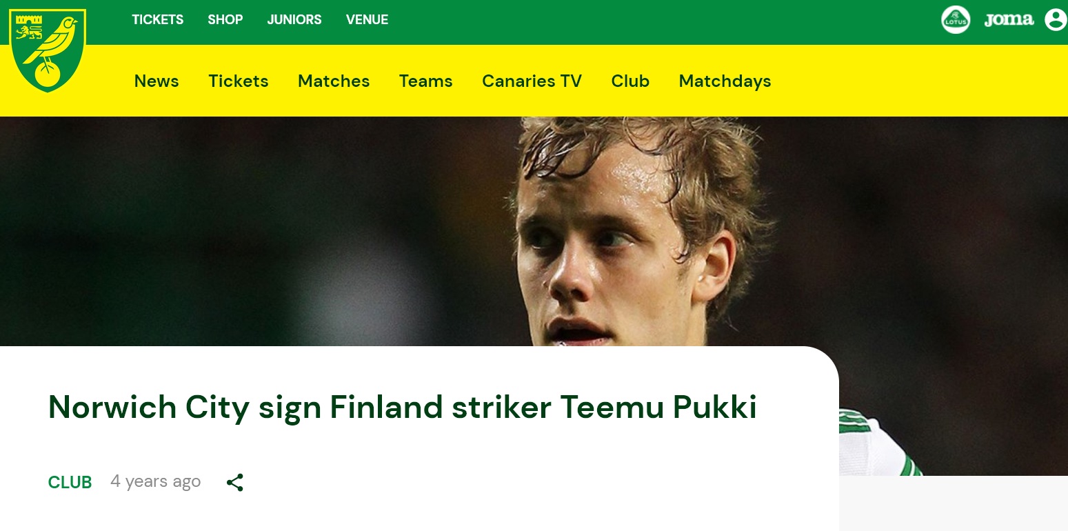 I can remember hearing the news that Norwich City had signed Teemu Pukki.