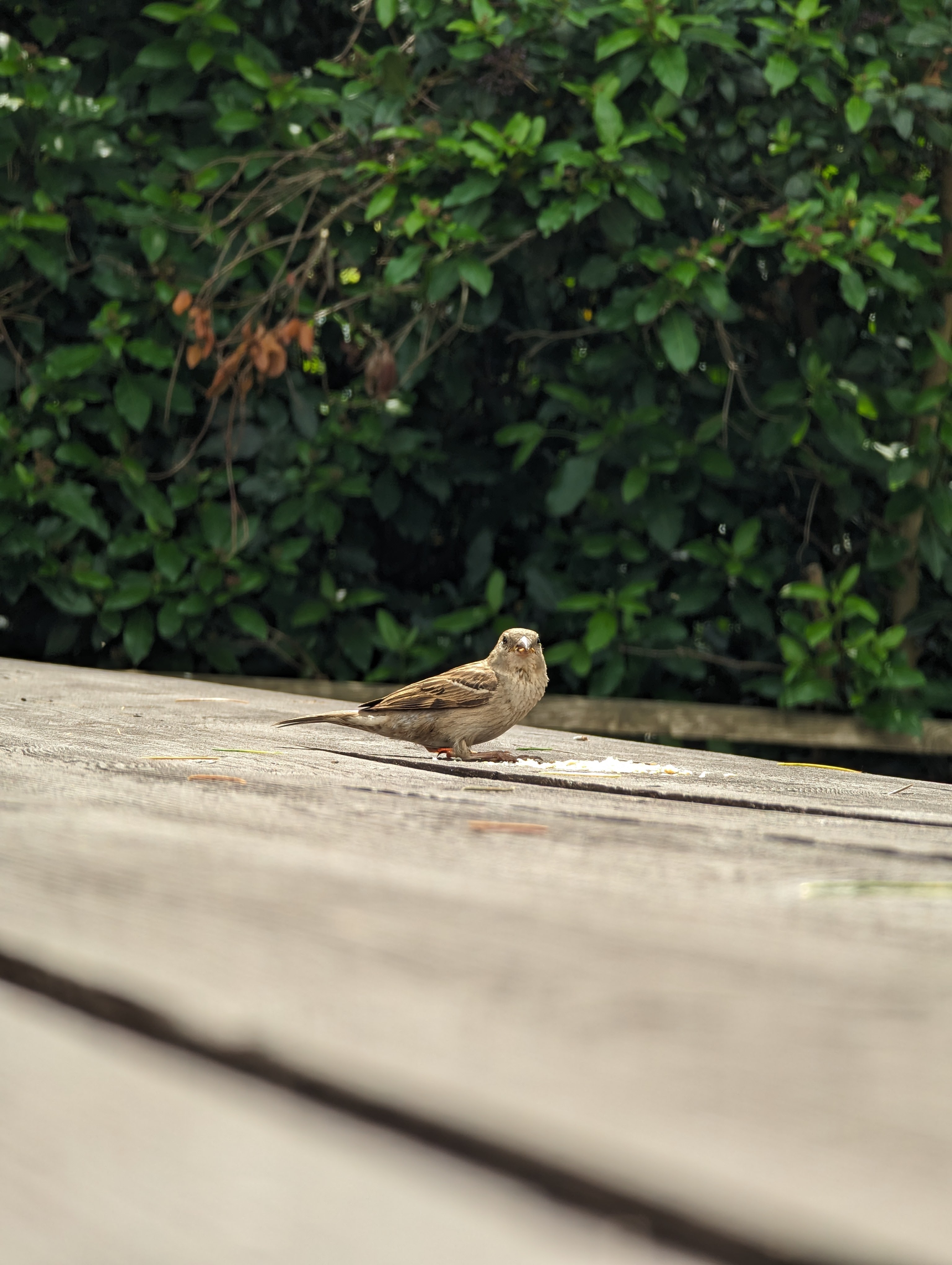 Even better, when I was enjoying a delicious sausage roll and slice of chocolate cake from the café, little birds like to sit on the tables and eat the crumbs that people have left behind. Look at this chap.