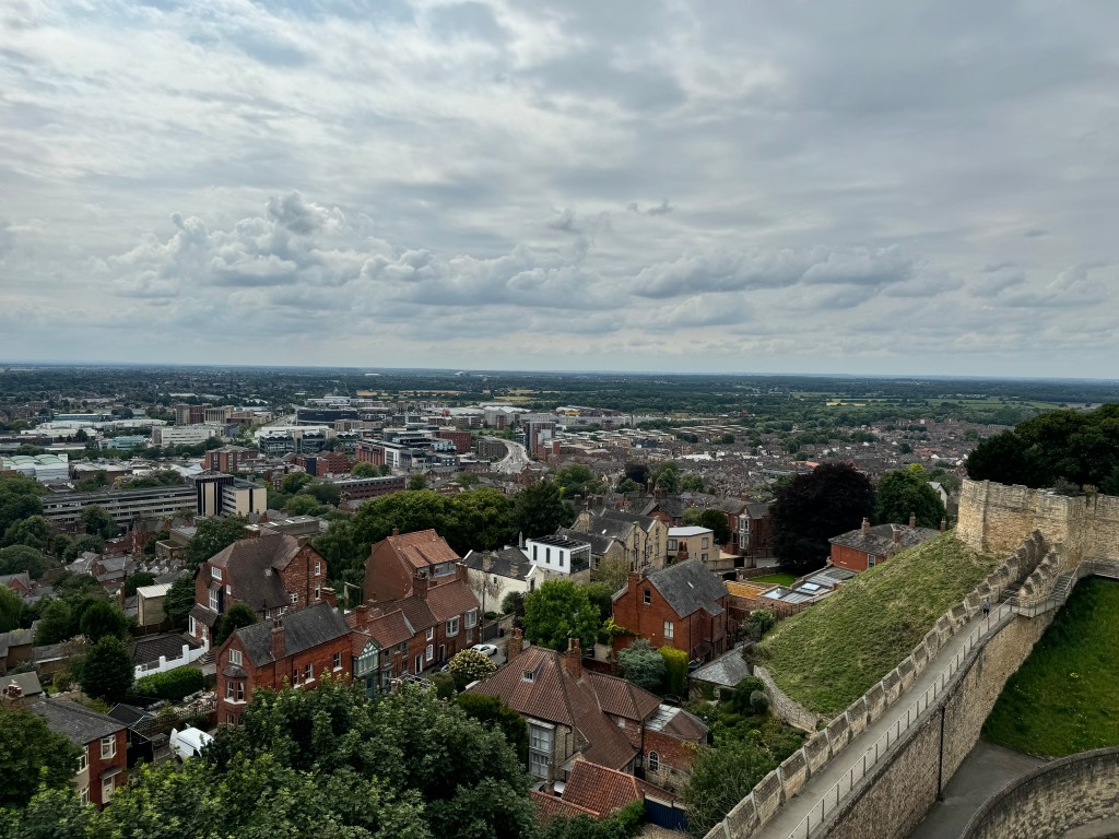Steep Hill was well worth the climb though, as the Cathedral Quarter at the top is beautiful. We went into the grounds of the castle and paid to do the castle wall walk. You get to walk all the way along the top of the castle walls, a full circle, and it was well worth the £10 fee to do so. The views are simply spectacular, both of the cathedral opposite and the surrounding countryside.