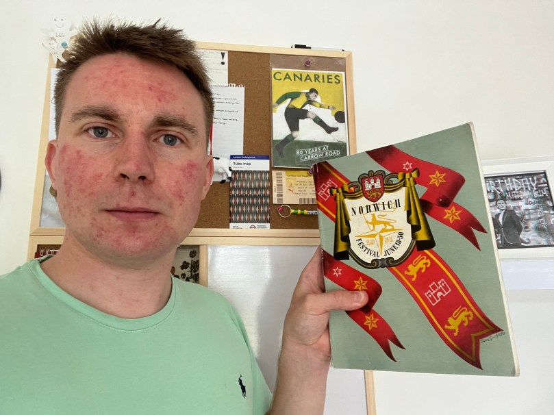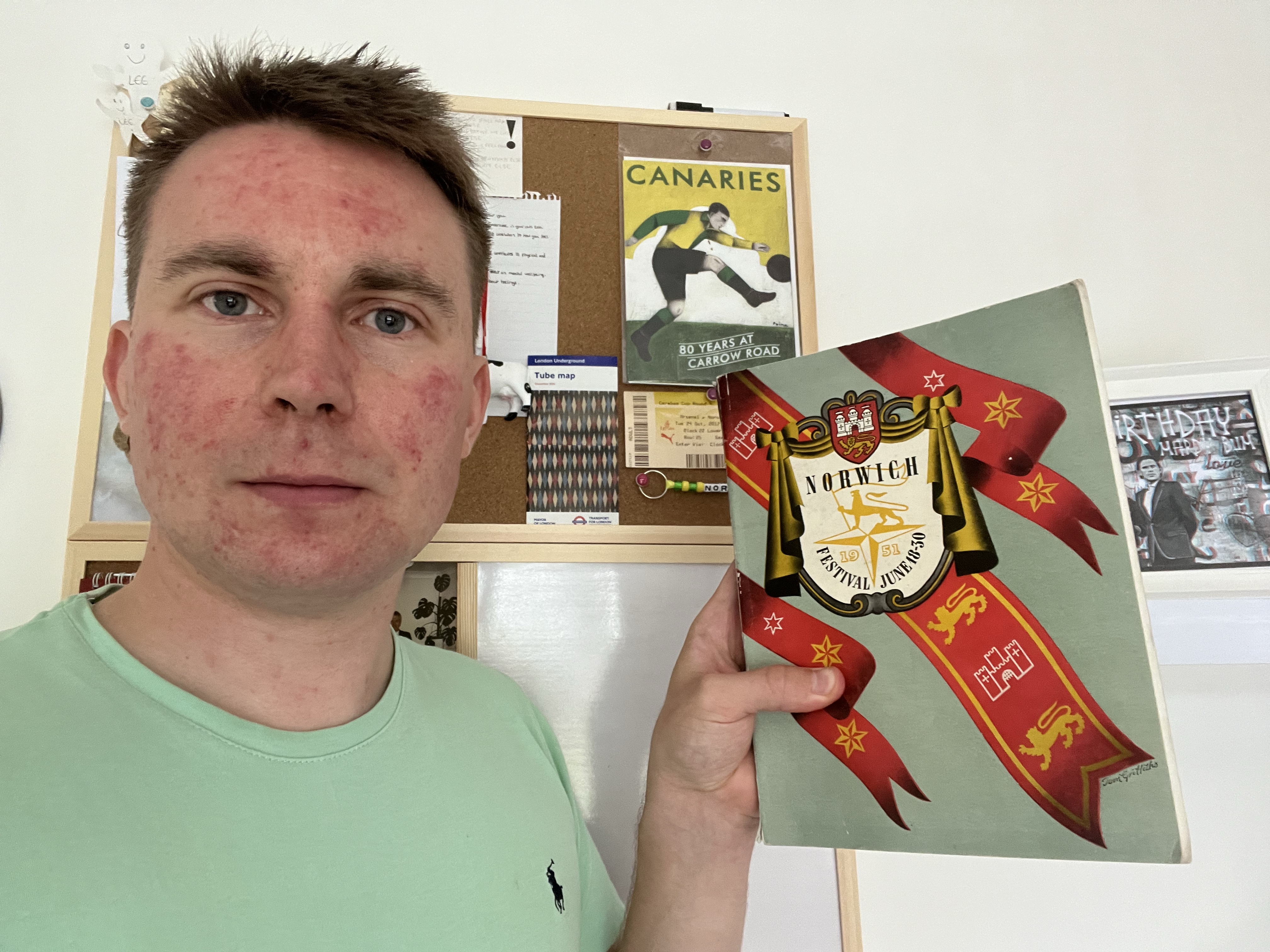 I recently returned to the ‘retro shop’/garden centre that I had found a football magazine from 1964 in back in March. The pile of magazines and comics had gone, but I did discover a fascinating artefact of local history: the official guide to the Norwich Festival of 1951.