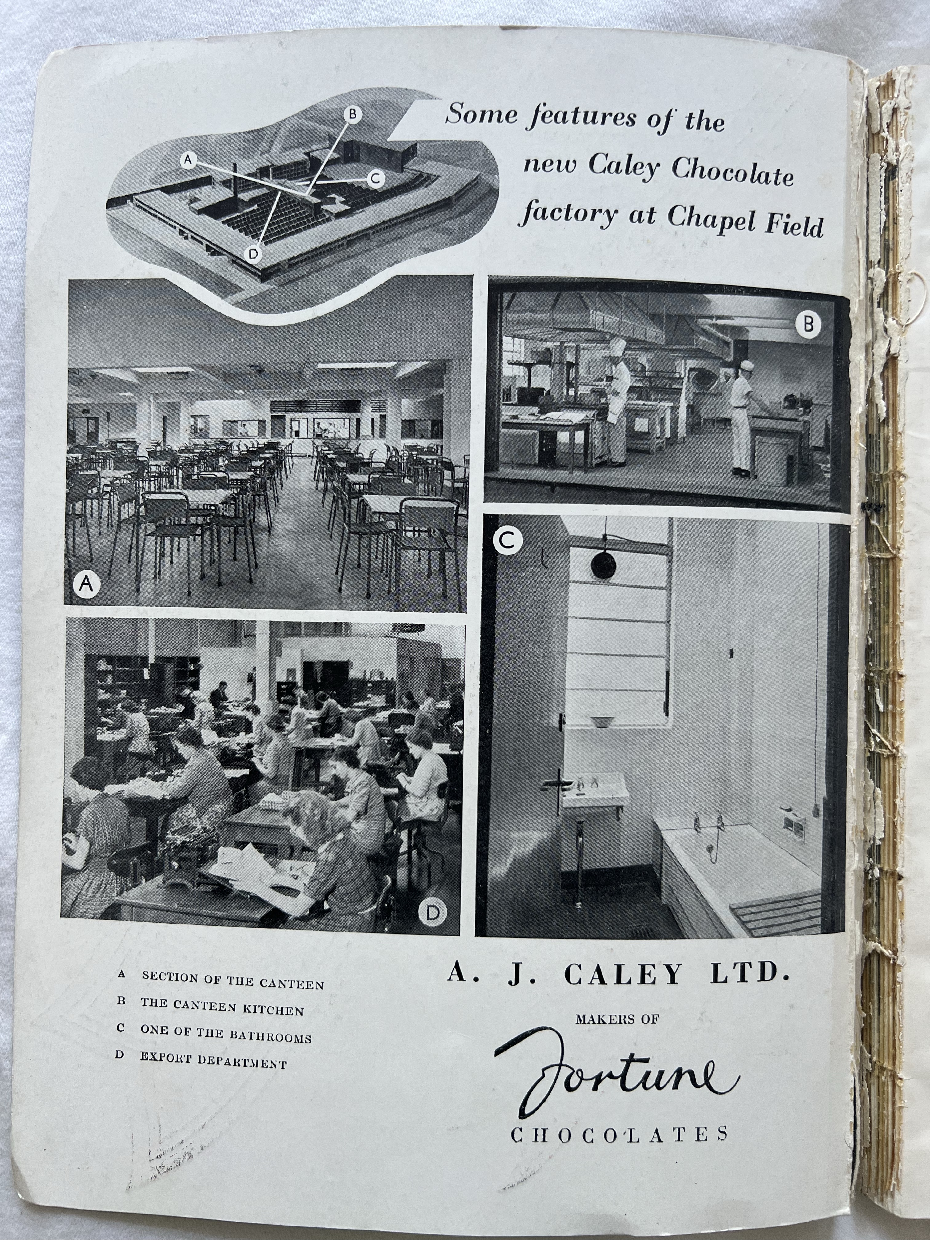 Caleys used their space in the book to show off their new chocolate factory. The building is now long gone, demolished and replaced by what is now called Chantry Place shopping centre.