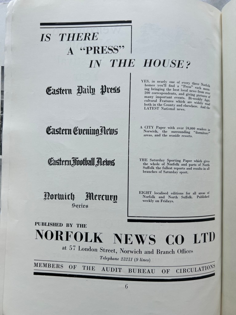 I’ll start with this one, advertising the local newspapers of Norwich and Norfolk. The Eastern Daily Press and the Evening News are still in publication, though the EDP’s claim that ‘nearly one of every three Norfolk homes’ will have one is fanciful in this internet age. I bet their overworked staff wish they still had 200 correspondents to call upon as well.