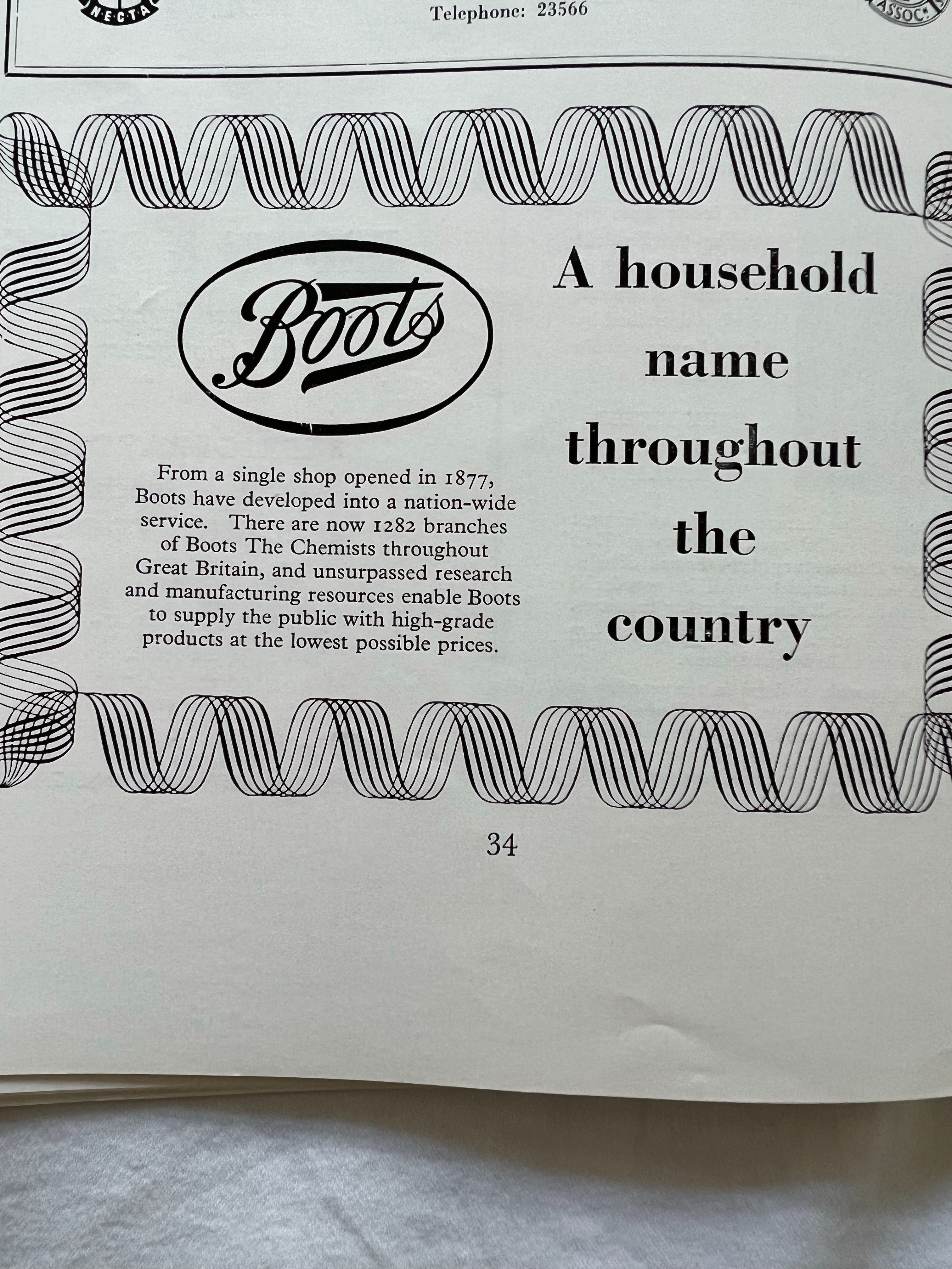 This advert for Boots caught my eye only because the pharmacist’s logo is almost the same as it is now.